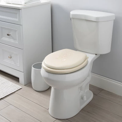 Your toilet will look brand new with the Bath Bliss beveled toilet seat. The 16.5″ toilet seat fits standard round toilets. Comes complete with all hardware for easy installation. Designed with decorative soft vinyl designed for making this seat sure to last. The adjustable non-slip hinges keeps seat in place without slide off toilet bowl. Giving your bathroom a whole new makeover, be sure to replace your toilet seat when its time for an upgrade!