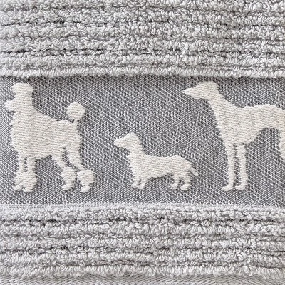 - Plush textured terry with a woven jacquard dog design along hem