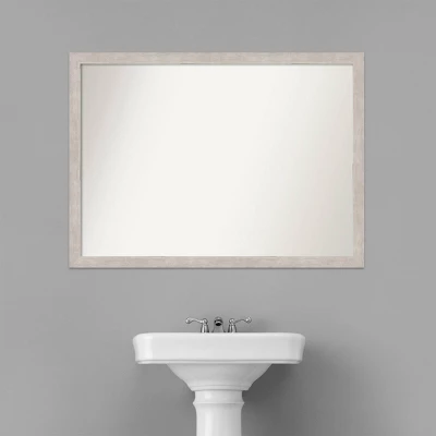 Give your bathroom the finishing touch with this 100% real wood Non-Beveled Wall Mirror framed with the Marred Silver frame. Individually made using traditional custom framing techniques, it has the quality you would expect from your local frame shop. It holds its value with premium finishing that can be appreciated up close. Because of our attention to detail and focus on artistry, architects, interior designers, and homeowners alike choose this mirror to create beautiful living spaces.