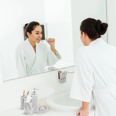 - Bathroom Accessory Set: 4-piece Set Includes 1 Toothbrush Holder, 1 Soap/Lotion Dispenser, 1 Cotton Holder, and 1 Tumbler Holder
