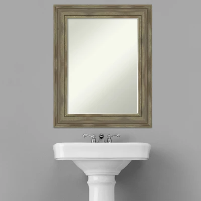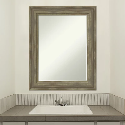 Give your bathroom the finishing touch with this 100% real wood Petite Bevel bathroom mirror. The Alexandria Greywash frame is a grey-washed, distressed frame with distinctive weathering and a high outer edge. The finish is a cool grey with cream undertones.. The frame is 3.25 in. wide and stands 2 in. off the wall. It’s Individually made using traditional custom framing techniques, it has the quality you expect from your local frame shop. It holds its value with premium finishing that can be appreciated up close. Because of our attention to detail and focus on artistry, architects, interior designers, and homeowners alike choose this mirror to create beautiful living spaces.