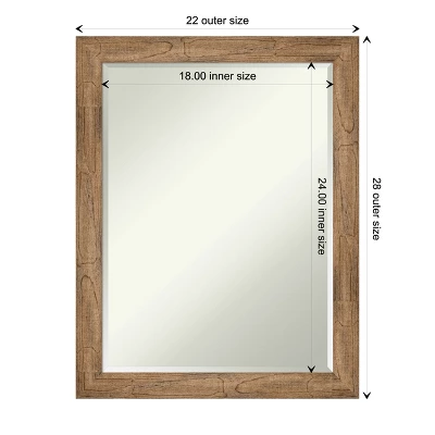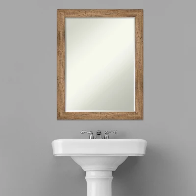 Give your bathroom the finishing touch with this 100% real wood Petite Bevel bathroom mirror. The Owl Brown Narrow frame is a natural wood frame with a slight scoop and woodgrain variation showing through. The finish is warm light brown with grey, cream, and mauve tones.. The frame is 2 in. wide and stands 0.75 in. off the wall. It’s Individually made using traditional custom framing techniques, it has the quality you expect from your local frame shop. It holds its value with premium finishing that can be appreciated up close. Because of our attention to detail and focus on artistry, architects, interior designers, and homeowners alike choose this mirror to create beautiful living spaces.
