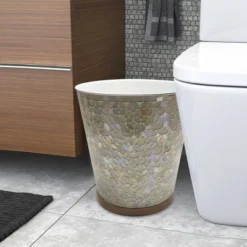 Pearl Escent Mosaic And Wood Bathroom Wastebasket – Nu Steel