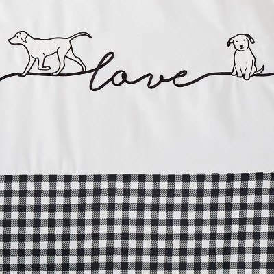 Add a little puppy panache and bold style to any bathroom with Farmhouse Dogs fabric shower curtain by SKL Home. Graphic black and white, script ribbon words, applique and embroidery all add up for to one special shower curtain. This versatile style will coordinate with farmhouse to contemporary for a happy bathroom refresh.