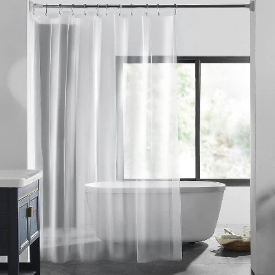 Protect your shower curtain or hang this beautiful shower curtain liner all on its own for a perfect look. Heavy duty 10 gauge PEVA is super sturdy and has absolutely no toxic odor and is also mold & mildew resistant. Metal Grommets and a mesh sheer header will protect your liner from tearing.