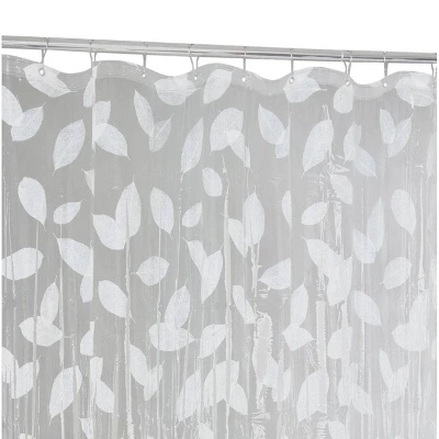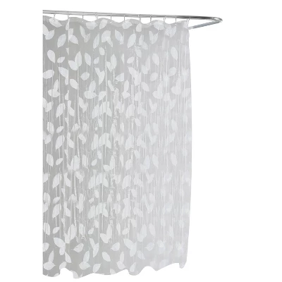 The Harvest Leaf Shower Curtain by Moda adds a classic touch to your bath decor. The brilliant white leaves are printed on a frosted backdrop. The Harvest Leaf Shower Curtain is made of 100% PEVA and is waterproof. This shower curtain is easy care, just wipe clean. No liner required here.