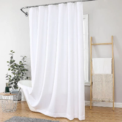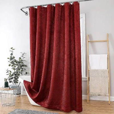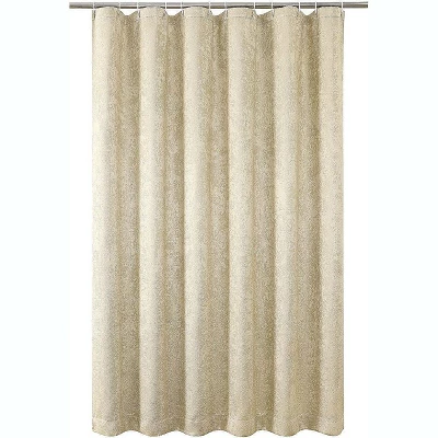 Add this luxurious jacquard fabric shower curtain to your bath or shower for an instant pop of luxurious decor. Features a subtle embellished design. Comes ready to hang for immediate use. Machine washable and dry able for easy care. Hooks and liner not included and sold separately.