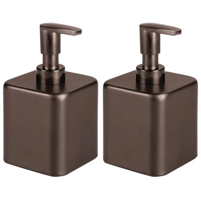 Give liquid soap a stylish home on your bathroom vanity or sink with this classic Liquid Soap Dispenser Pump from mDesign. The refillable dispenser holds up to fourteen ounces of soap. Refilling the dispenser is simple: once empty, just pull off the top and fill with more liquid soap. The wide mouth makes refilling easy! The modern, square design and high-quality materials add just enough shimmer and shine to your bathroom decor to make a fashionable statement! Also, use with aromatherapy soaps or your favorite essential oils!