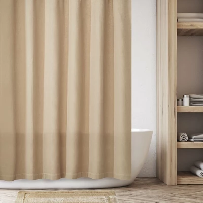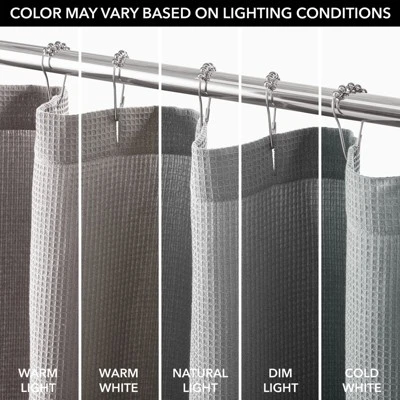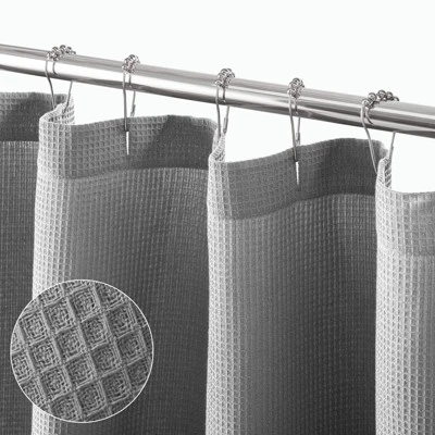 The mDesign Hotel Shower Curtain has a soft, waffle-weave pattern that elevates your bath or shower for a spa-like experience. A heavy-weight cotton helps keep the curtain from billowing. Reinforced button holes fit most standard sized shower hooks and make hanging the curtain simple and easy.