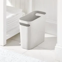 Keep your bathroom neat and clean with this Bowl Brush and Wastebasket Combo Set by mDesign. The rectangle wastebasket trash can is perfect for collecting garbage or recycle items at the bathroom vanity or next to the toilet. The toilet bowl brush features a stylish housing to conceal your cleaning tool when not in use and cleans under the bowl rim and in hard-to-reach areas! The sleek, textured design adds style to any decor. mDesign – Solutions for home. Solutions for life.