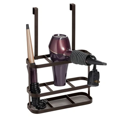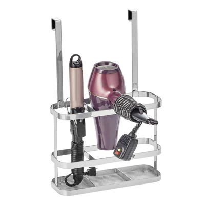 Sort and Organize hair styling tools and products with this Over the Door Hanging Organizer by mDesign. Three compartments hold all the tools you need for a great hair day, while the bottom ledge keeps items secure. This caddy organizer installs instantly by hanging over cabinet doors. Place it on the outside of the door for instant access or tucked inside for discreet storage. The compact design lets you maximize your storage without cutting into already limited bathroom space. Use this caddy organizer for brushes, combs, all of your styling tools, and even your favorite products. mDesign – Solutions for Home. Solutions for Life.