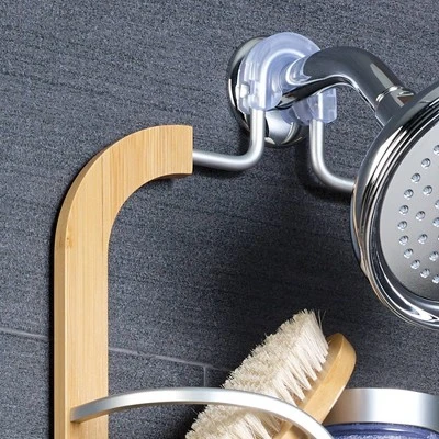 This shower caddy combines the timeless appeal of beautiful and soothing bamboo with lightweight, strong and rustproof aluminum to provide an ideal storage solution that’s also sure to instantly renew your bath decor. The caddy’s innovative LockTop mechanism makes it easy to securely attach to standard showerheads (with no tools needed besides the included hex wrench). Two bamboo shelves are spaced far enough apart to allow extra tall bottles to fit, and the shelves are flat to ensure stable storage. For even more functionality, the caddy has a bamboo soap tray, integrated razor holders and two hooks for hanging storage of washcloths, shower poufs, loofahs and more.
