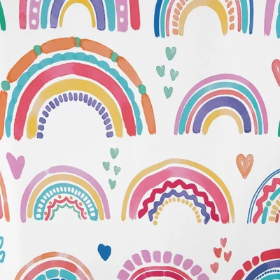 - Enchanting rainbows and hearts themed design in refreshing multi-colored brights on a white ground
