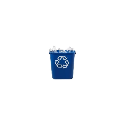 Keep everything tidy and clean with this Rubbermaid small deskside recycling container. Adopt a reliable recycling solution with this small deskside recycling container. The plastic construction prevents this container from chipping or splitting, while the prominent recycling symbol printed on the side makes it immediately identifiable from traditional trash cans. This Rubbermaid recycling container is small in size, making it perfect for use under a desk. Desk-side recycling bin is space-efficient and economical, making them an easy and effective recycling solution. Features 3.25 gal. capacity (13 Qt). Made of lightweight and durable blue plastic. Meets or exceeds OEHHA standard. All-plastic construction won’t chip, rust, or dent. Fits under standard-height desk. Recycling options available. Sold as 1 Each.