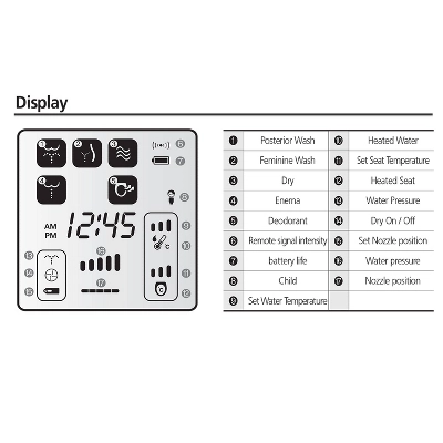 - On Demand, Unlimited Warm Water. Heated Seat, Water, Air dryer