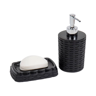 Its black color and wicker design complements any bathroom decor, adding style and function. The set is also a professional-looking choice for your office restroom.