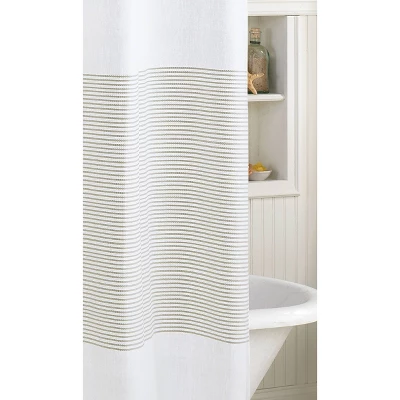 Add a modern taste of coastal living to your shower and soak in the easy, breezy lifestyle with Panama Stripe Shower Curtain. Slim, sophisticated stripes race across the surface of this shower curtain. Vintage tassels dress the hem for a playful charm. Available in navy, grey, and taupe to match your resort style.