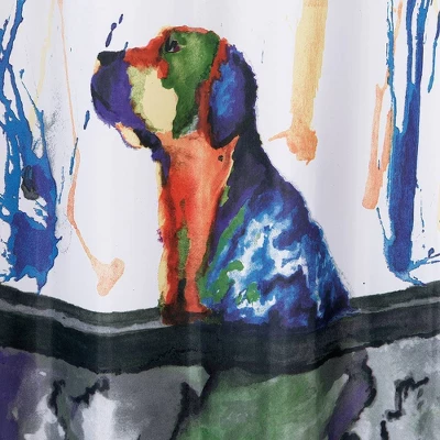 - Oversized dog in tub design printed on 100% plainweave polyester fabric in bright painterly splashes of color against a crisp white ground