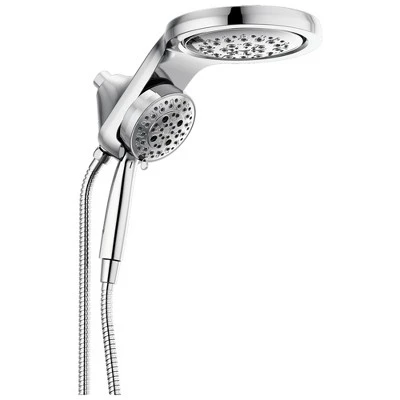 A Delta® HydroRain® H2Okinetic® Two-in-One Shower Head with hand shower completely transforms your shower with dual shower head functionality, featuring an integrated raincan and hand shower. The power of the raincan and hand shower together creates an immersive, spa-like showering experience that you can install in minutes to a standard shower arm, without altering the plumbing behind the wall. The integrated hand shower stays put every time you dock thanks to MagnaTite® Docking and provides maximum flexibility and control when you need it, while the H2Okinetic PowerDrench® Spray feels like more water, warmth and intensity without using more water. Don’t just take a shower, transform it, with a Delta HydroRain Shower Head. While other products may gather unsightly mineral build-up over time, Delta soft rubber Touch-Clean® spray holes allow any mineral residue to simply be wiped away for an instantly refreshed look – with no need for soaking or the aid of chemical cleaners. The pause setting gives you ample space for shaving, lathering and other shower tasks, without worrying about overspray or water waste. This spray setting helps you conserve water, so you can worry less about depleting your supply of hot water – and you help the environment too.